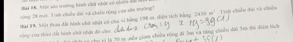Vậy chiều dài và rộng là `54m` và 45m`