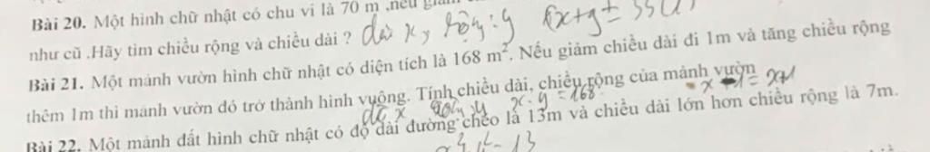 Vậy chiều dài mảnh vườn là `14m,` chiều rộng mảnh vườn là `12m.`