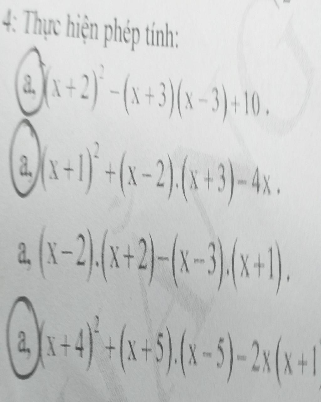 `a)` $(x+2)^2 - (x+3)(x-3) + 10$