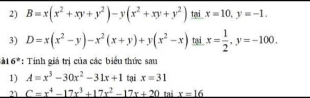 * Thay `x = 10` và `y = - 1` vào biểu thức `B` ta được :