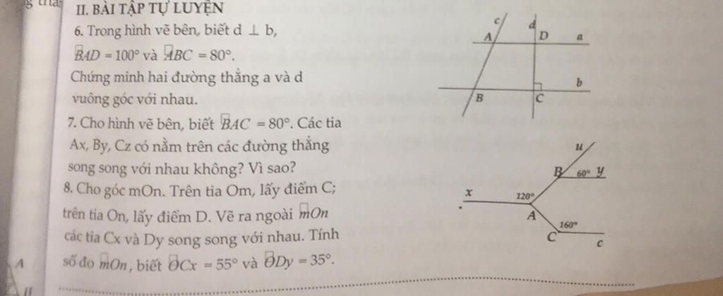 7. Cho hình vẽ bên, biết BAC =80°. Các tia