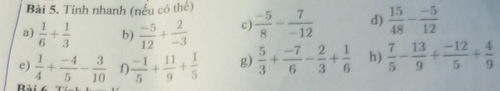 `g) 5/3 + (-7/6) - 2/3 +1/6`