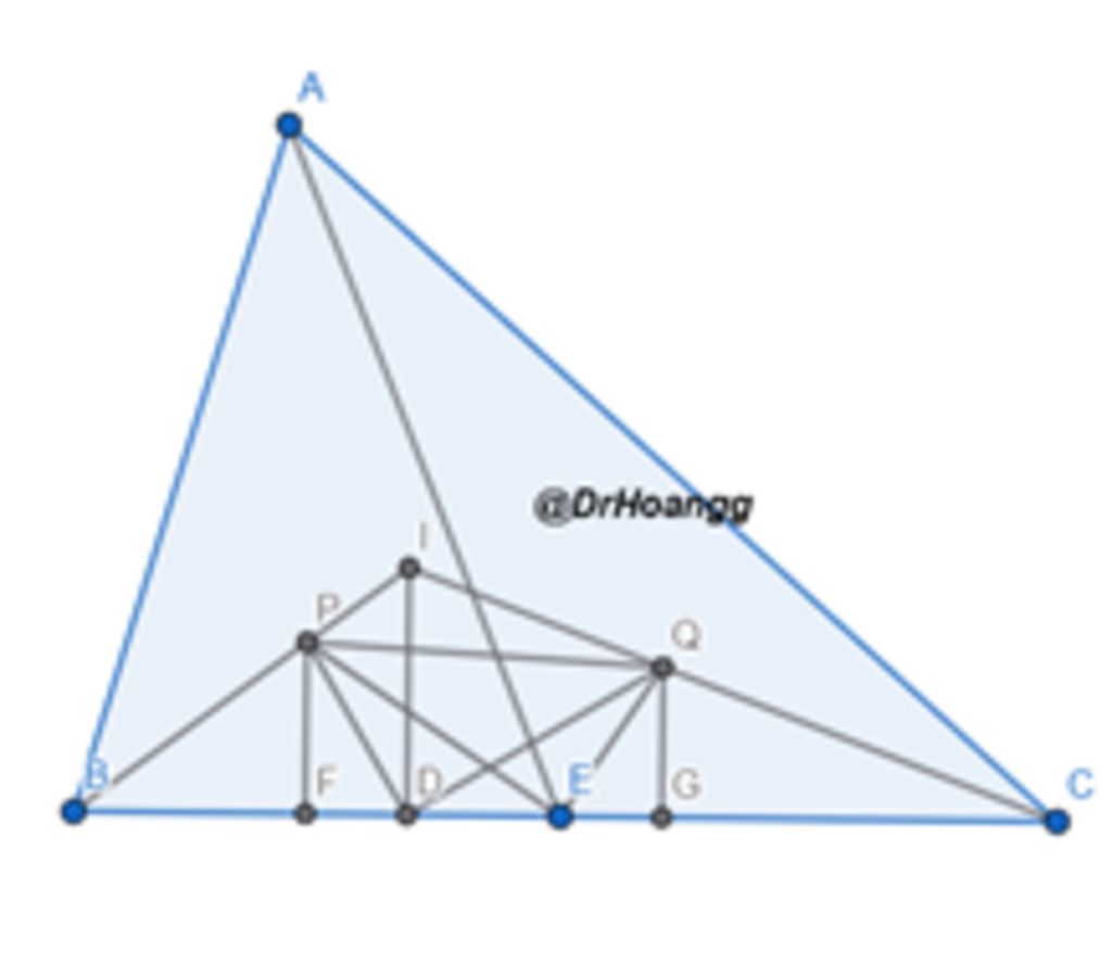 Cho tam giác `ABC` với tâm đường tròn nội tiếp là `(I)`.gọi `d` là hình chiếu của `I` lên `BC` và `E` là `1` điểm bất kì thuộc đoạn `BC`. Gọi `P,Q` là tâm đường tròn nội tiếp các tam giác `EAB,EAC`.Chứng minh:góc `PDQ=90^o`
