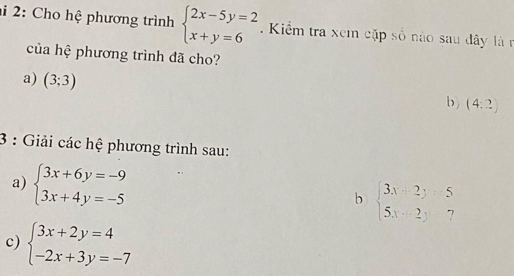 Vậy cặp số `(4;2` không phải nghiệm của hệ phương trình