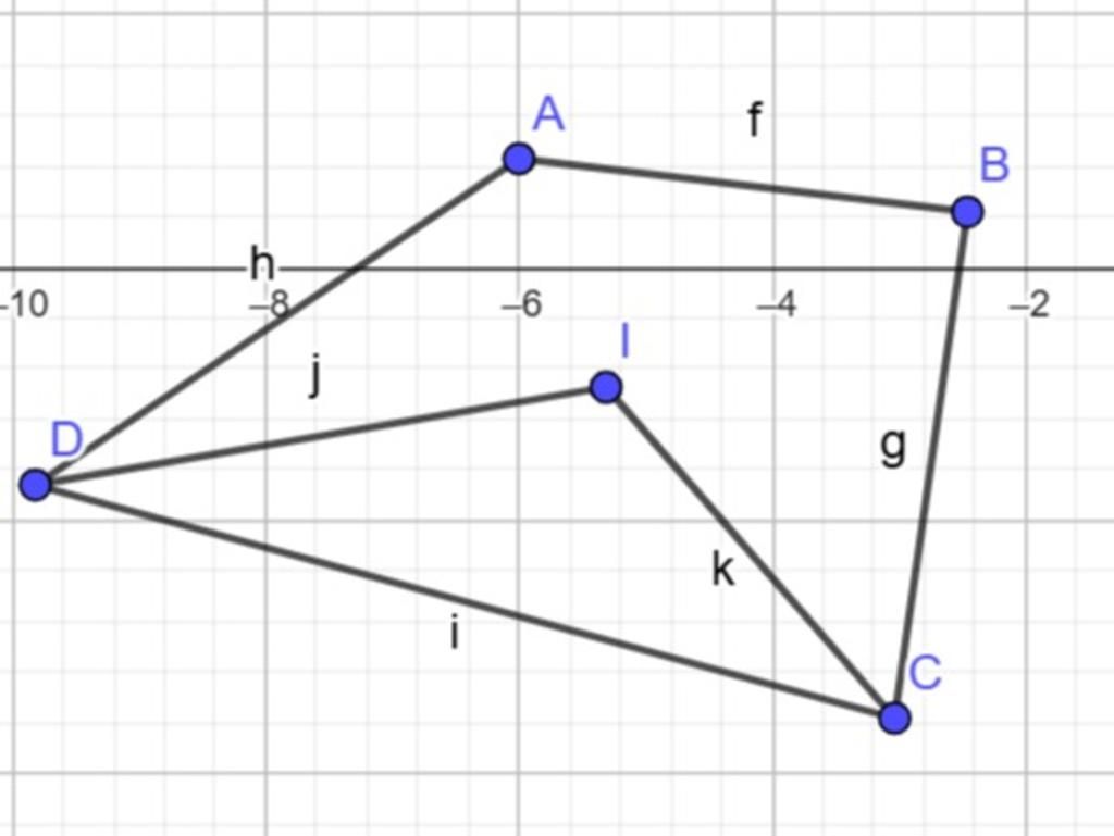 Tứ giác ABCD có góc A - góc B=50°.các tia phân giác của góc C và D cắt nhau tại I và góc CID = 115°. Tính góc A và B