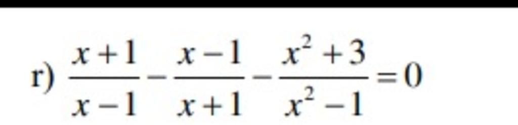 `(x + 1)/(x - 1) - (x - 1)/(x + 1) - (x^2 + 3)/(x^2 - 1) = 0` (`x ne +- 1`)