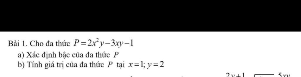 `b)` Thay `x = 1; y = 2` vào đa thức `P` ta được: