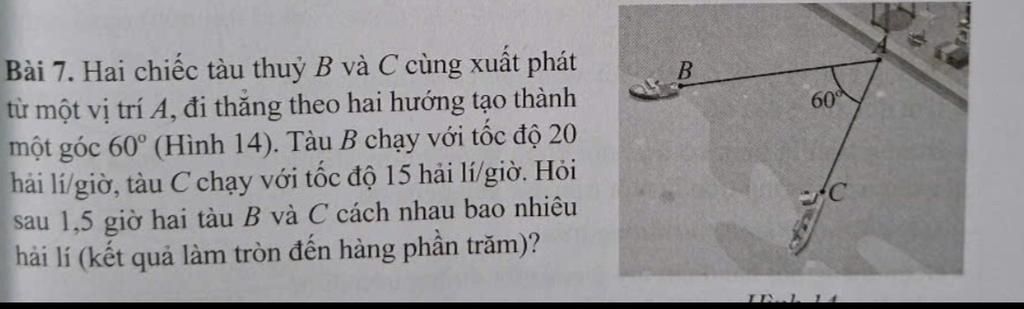 Quãng đường chiếc tàu thủy `B` chạy được là: `20·1,5=30` (hải lí)