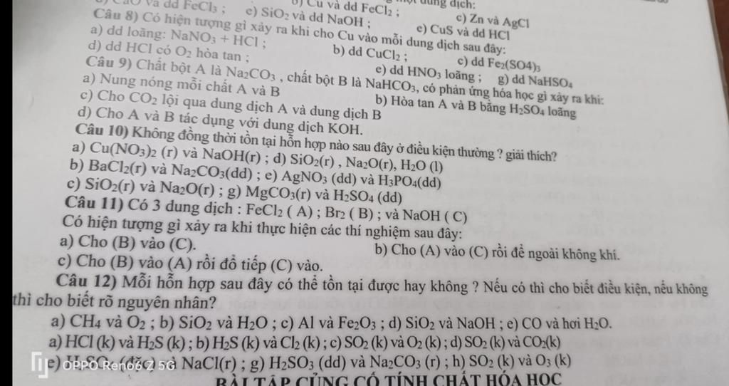 `->` Hỗn hợp không tồn tại đồng thời khi hỗn hợp đó có ít nhất 2 chất có tham gia phản ứng với nhau.