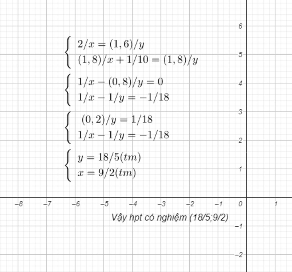 Vậy hpt có nghiệm `(4,5;3,6)`