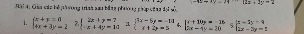 `{(3x + 3y = 0),(4x +3y = 2):}`