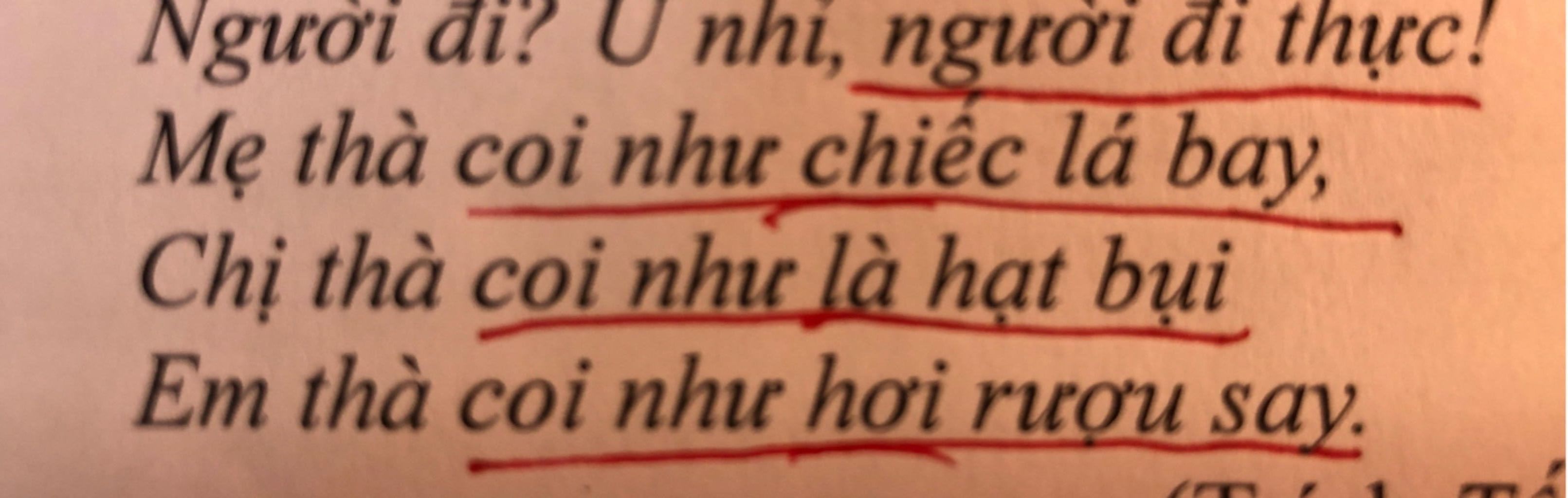 " mẹ , chị , em , chiếc lá bay , hạt bụi , hơi rượu say "