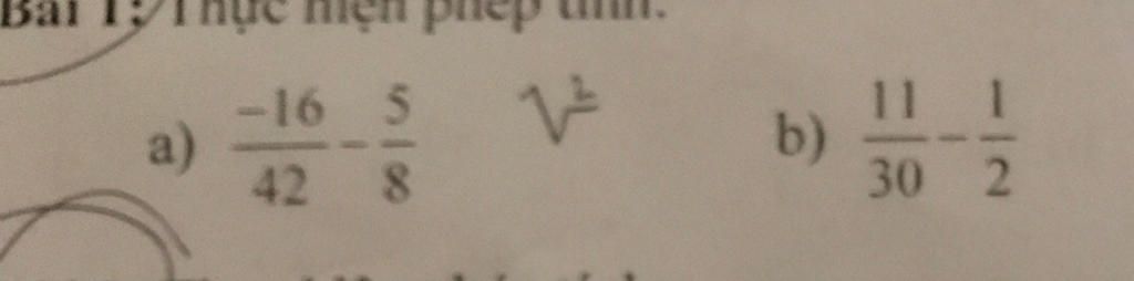a,$\frac{-16}{42}-$`5/8` $\frac{-64}{168}-\frac{105}{168}$ $\frac{-169}{168}$ b,$\frac{11}{30}-\frac{1}2$ $\frac{11}{30}-\frac{15}{30}$ $\frac{-4}{30}$ $\frac{-2}{15}$