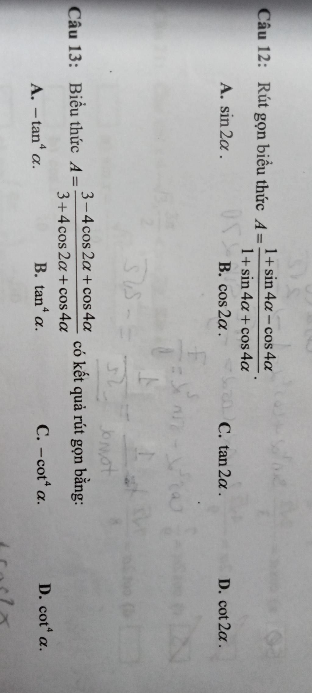 `A = ((1 - cos(4α)) + sin(4α)) / ((1 + cos(4α)) + sin(4α))`