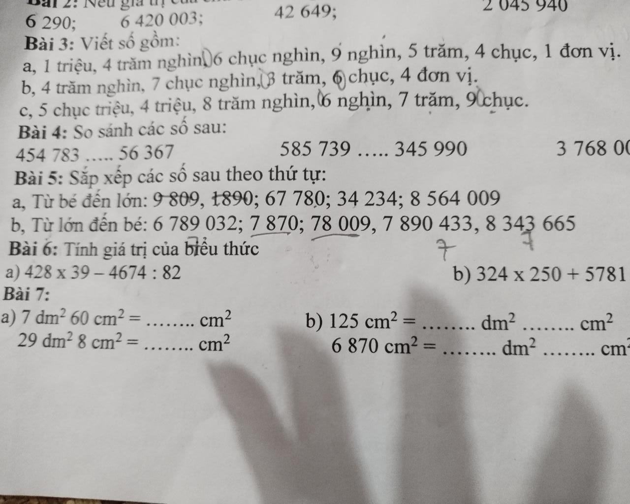 b,từ lớn đến bé: 8 564 009; 7 890 433; 6789 032; 78 009; 7 870
