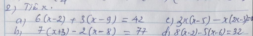 ` 6 ( x - 2 ) + 3 ( x - 9 ) = 42 `