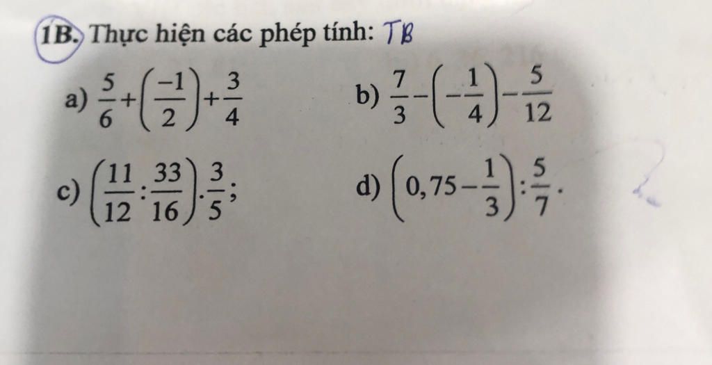 `a) 5/6 + (-1/2) + 3/4`