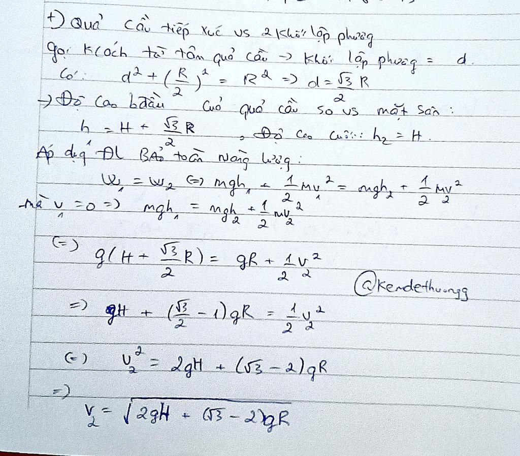 `-` Khoảng cách từ tâm quả cầu đến mặt sàn là:` H + R`