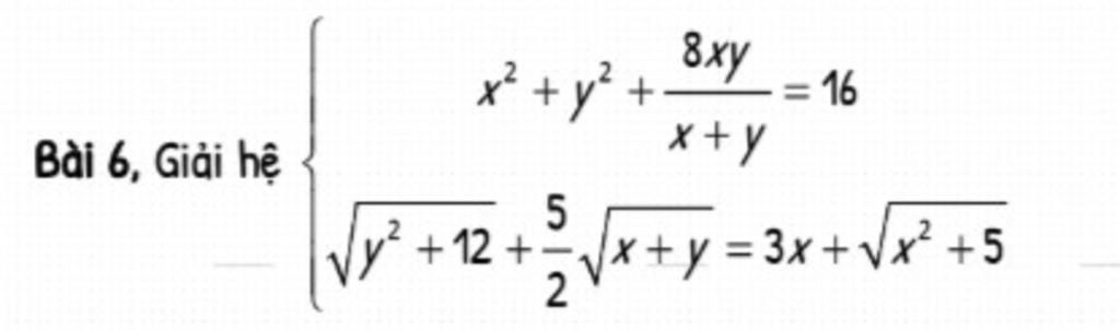 Đặt `S=x+y (S > 0)` và `P=xy`, khi đó phương trình: `x^2+y^2+(8xy)/(x+y)=16` trở thành: