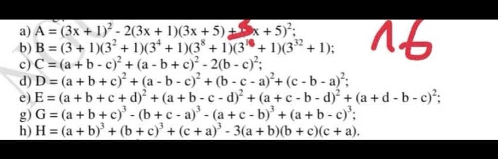 `b) B = (3+1)(3^2+1)(3^4+1)(3^8+1)(3^16+1)(3^32+1)`