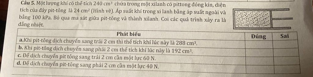 Theo bài, thể tích ban đầu của pit-tông `V_o=240cm^3` và `S=24cm^2`