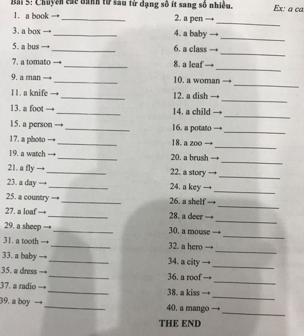 5. a bus -> buses