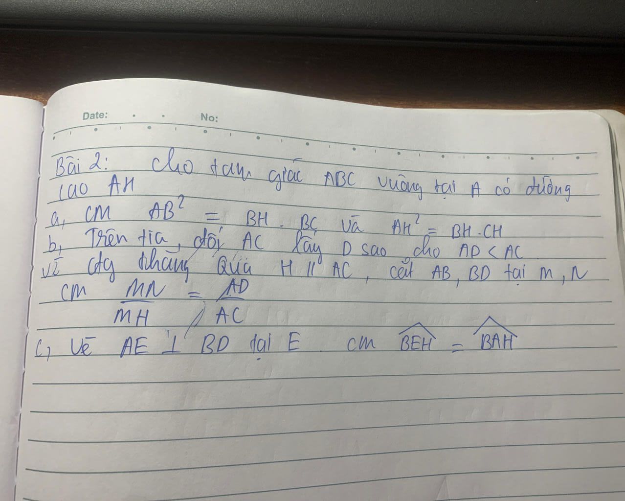 $\to \dfrac{MN}{AD}=\dfrac{BM}{BA}=\dfrac{HM}{AC}$