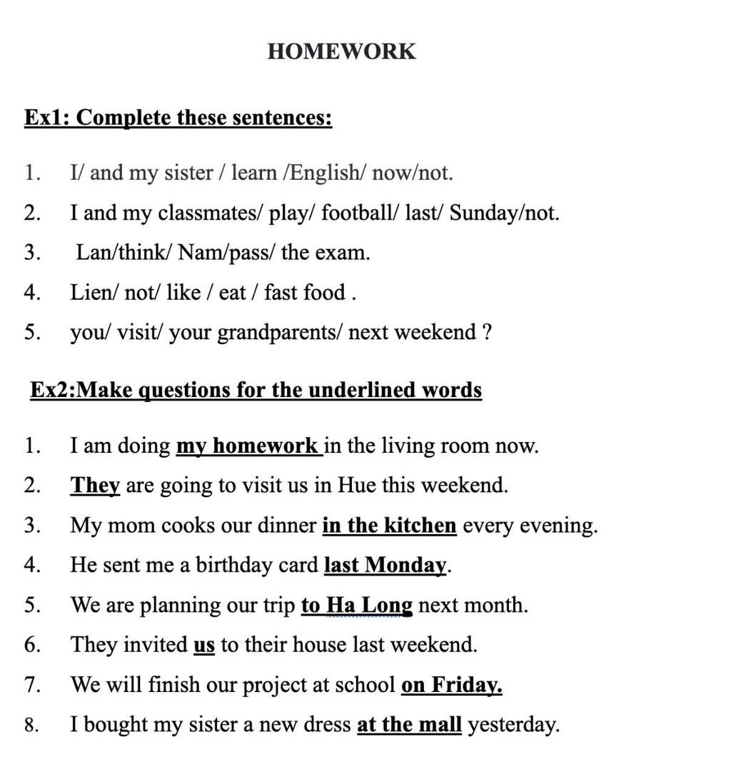 ⇒ "My homework" chỉ vật `->` dùng "What"