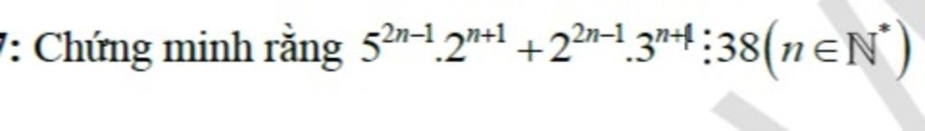 `5^(2n - 1) . 2^(n + 1) + 2^(2n - 1) . 3^(n + 1) \vdots 38 (1)`