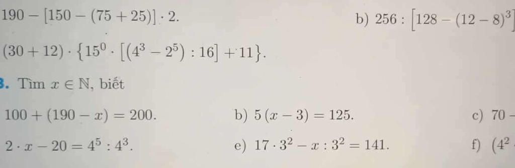 `c) (30 + 12) {15^0 . [(4^3 - 2^5) : 16] + 11}`
