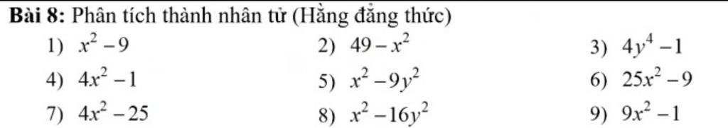 5, `x^2-9y^2=x^2-(3y)^2=(x-3y)(x+3y)`