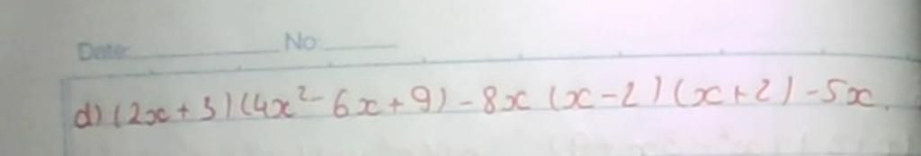d) `(2x+3) (4x^2 - 6x + 9) - 8x (x-2)(x+2) - 5x`
