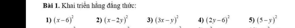 5) `(5-y)^2=5^2-2*5*y+y^2=25-10y+y^2`