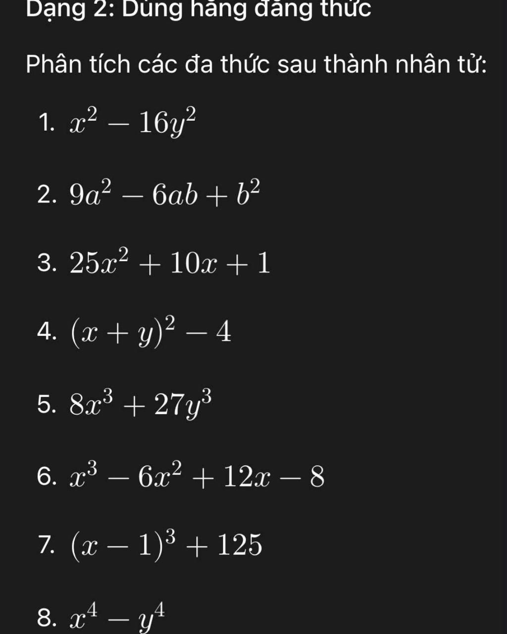 `8, x^4 - y^4`