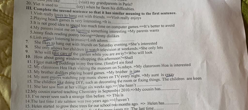 15. The children are keen on doing DIY, such as decorating the room or fixing things.