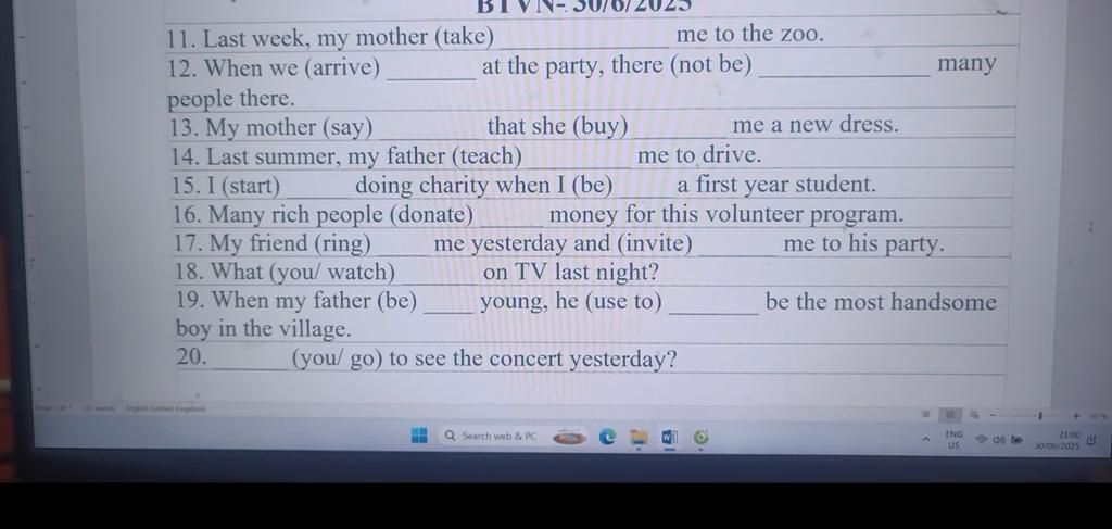 - Dấu hiệu nhận biết: Yesterday, last night, last month, last Sunday/Monday/Thursday/Wednesday