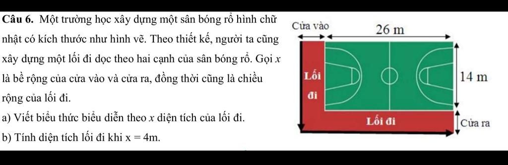 Vậy diện tích lối đi là `176 m^2` tại `x = 4`