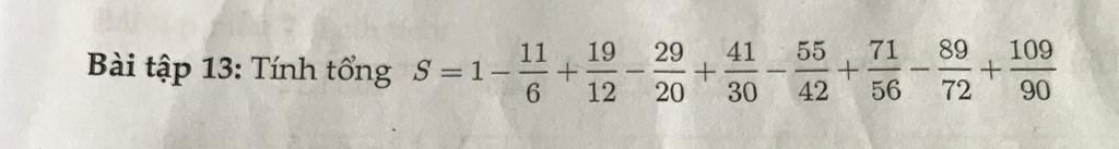 `S=1 - (1+5/6) + ( 1 + 7/12) - (1 + 9/20) + (1 + 11/30) - (1 + 13/42) + (1 + 15/56) - (1 + 17/72) + (1 + 19/90)`