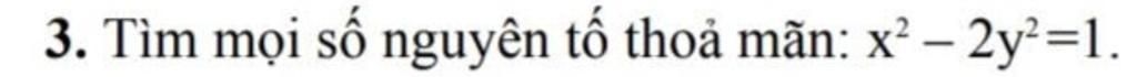 Ta có x^2 lẻ vì 1 là số lẻ mà 2y^2 là số chẵn nên x^2 lẻ vậy x $\geq$ 3. Ta lại có: