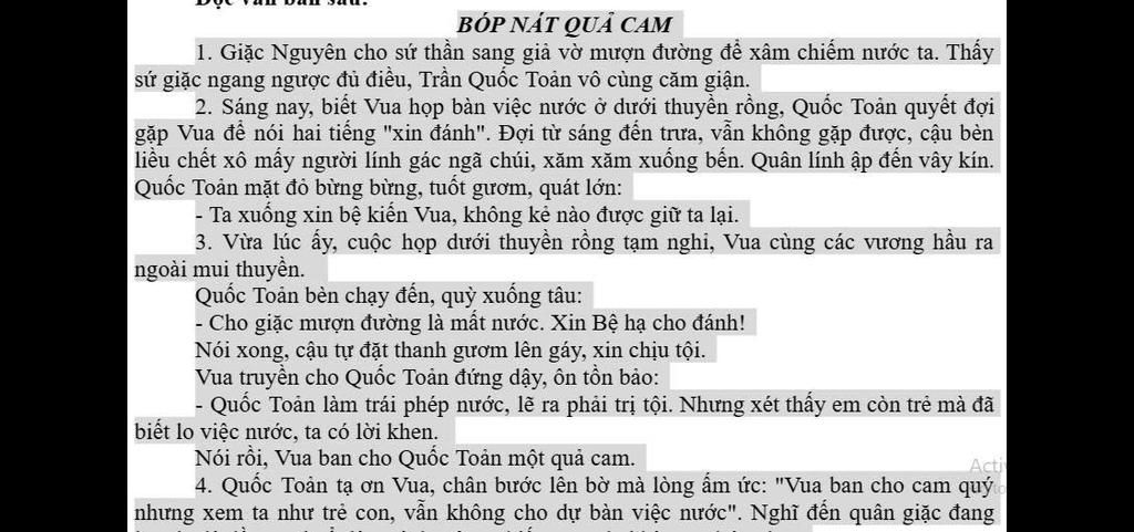 "Trần Quốc Toản mặt đỏ bừng bừng, tuốt gươm, quát lớn..."