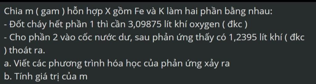 Vì khối lượng `K` có trong phần `2` bằng khối lượng `K` có trong phần `1` nên trong phần `1` có `3,9g K`