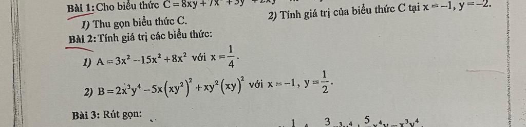 Thay `x=-1;y=1/2` vào `B` sau khi thu gọn ta có `:`