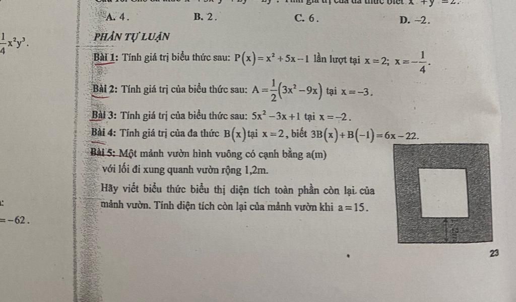 Thay `x=-1/4` vào biểu thức `P(x)=x^2+5x-1` ta được:
