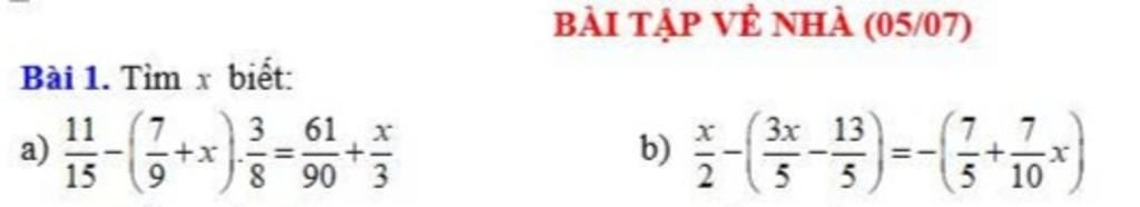 `a,` `11/15-(7/9+x) . 3/8=61/90+x/3`