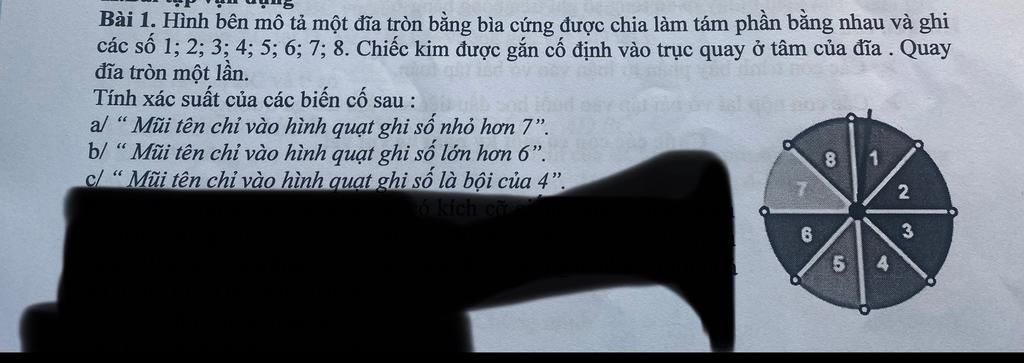 Biến cố: ''Mũi tên chỉ vào hình quạt ghi số nhỏ hơn `7`''