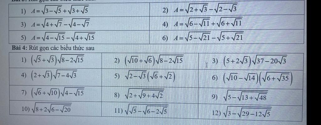 Bài 4: Rút gọn các biểu thức sau