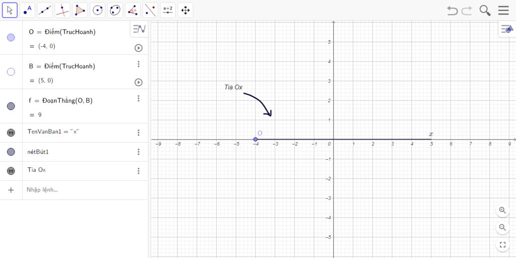 `+` Tia `xO`: Gốc `x`, đi về phía `O`