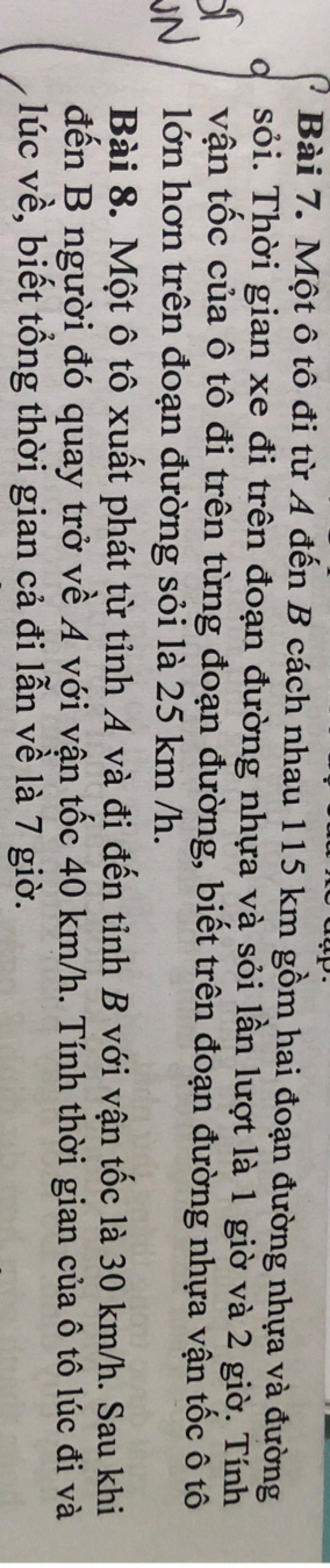 Vì tổng thời gian cả đi lẫn về là 7 giờ, ta có phương trình: