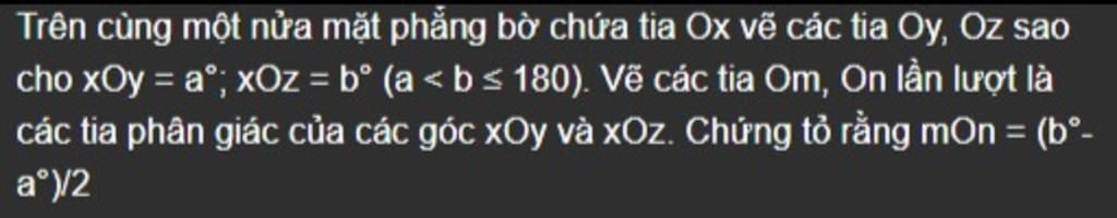 các tia phân giác của các góc xOy và xOz. Chứng tỏ rằng mOn = (b°-