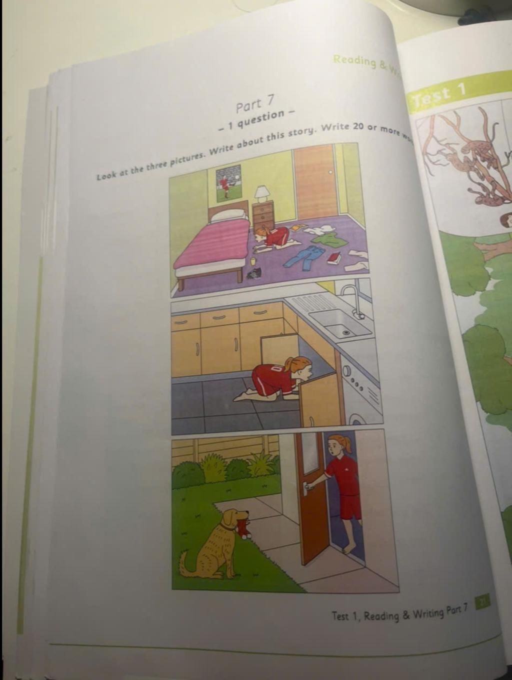 Cô bé tìm khắp nhà.